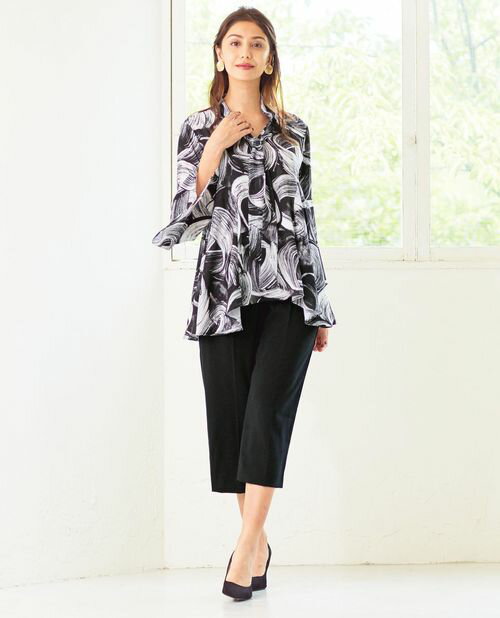 ミディアム丈ストレートパンツどんなトップスにも合わせやすい、ミディアム丈のセンタープレスパンツです。